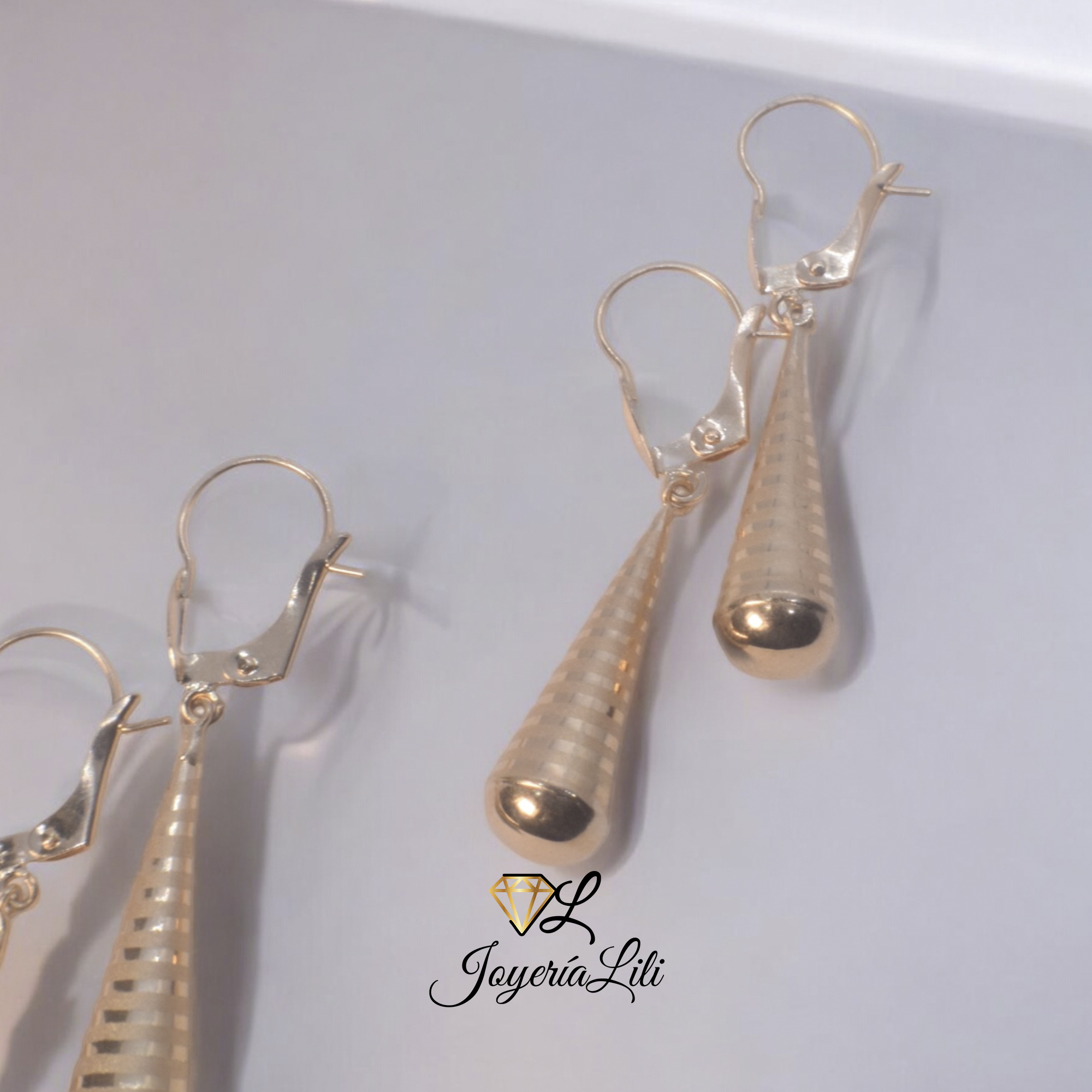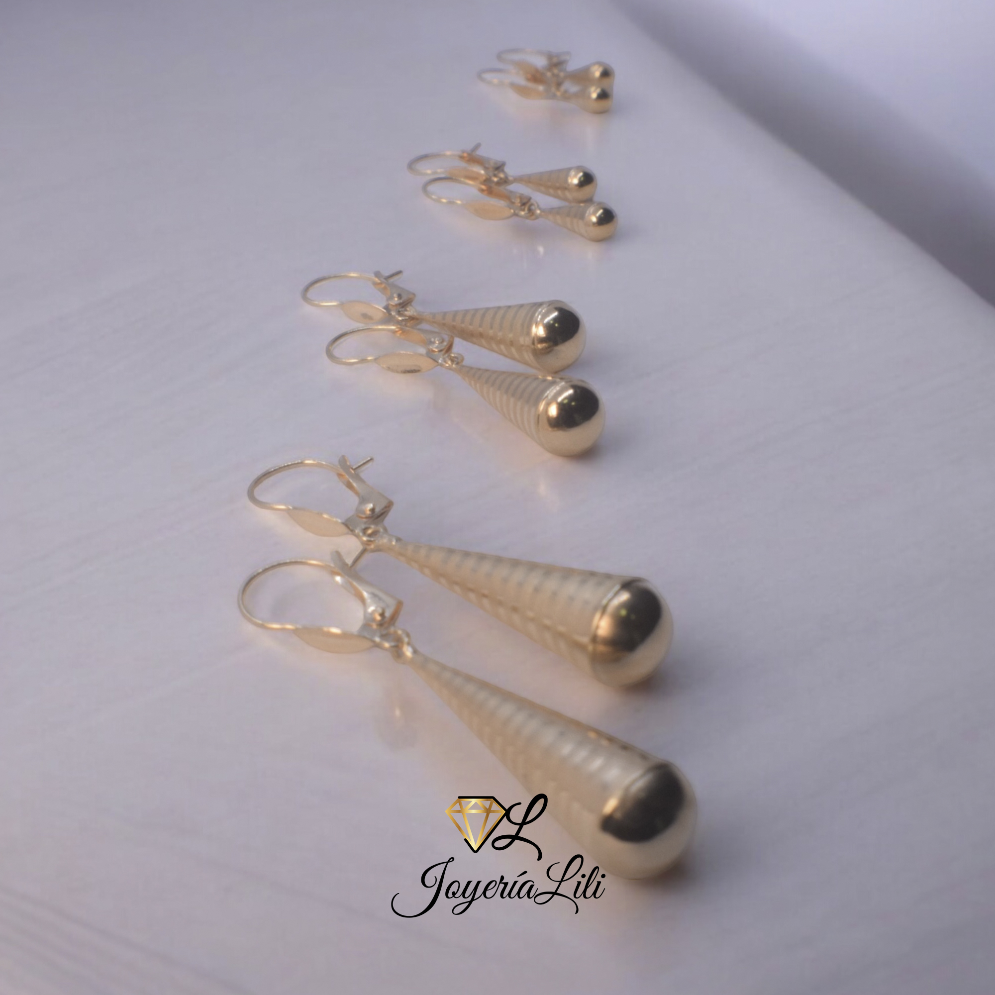 Aretas Lágrima, Fabricación nacional en oro amarillo de 18 Kilates. *El tamaño del largo no incluye el gancho de la areta.*El peso es aproximado.
